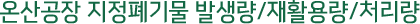 온산공장 지정폐기물 발생량/재활용량/처리량 : 구분, 2020, 2021, 2022, 2023 항목으로 구성된 테이블입니다.